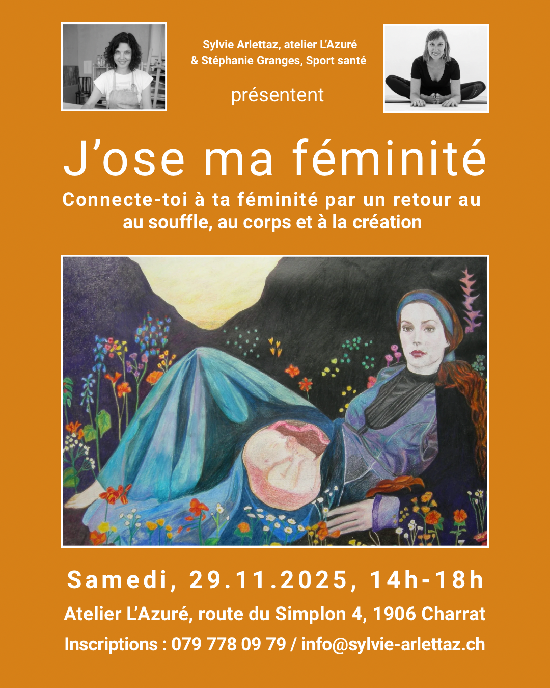 - Samedi, 29.11.2025 : « J’ose ma féminité », en collaboration avec Stéphanie Granges, coaching psycho-corporel